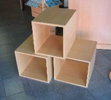 Cubos apilables construidos en Melamina color haya. Medidas: 0,50 m. x 0,50 m.